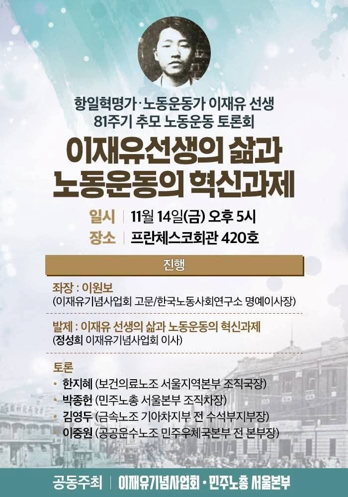 * 이 글은 지난 11월 14일 <항일혁명가ㆍ노동운동가 이재유 선생 81주기 추모 노동운동 토론회 이재유 선생의 삶과 노동운동의 혁신과제>에 제출된 토론문입니다.
