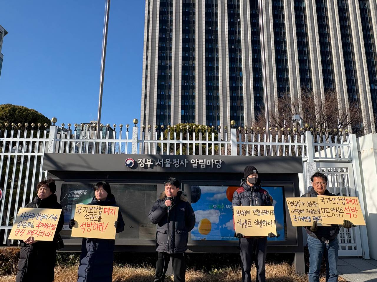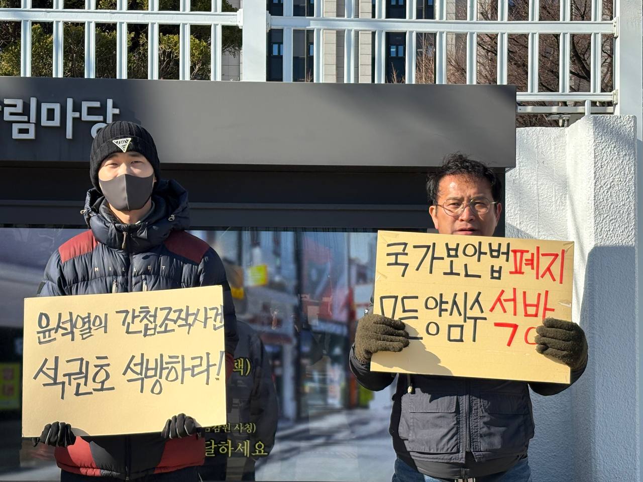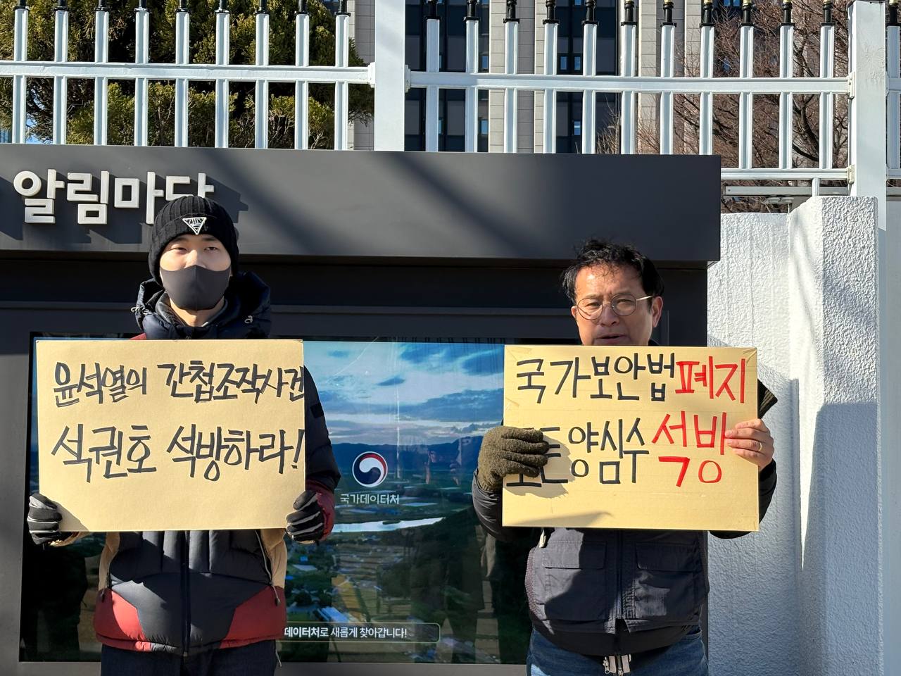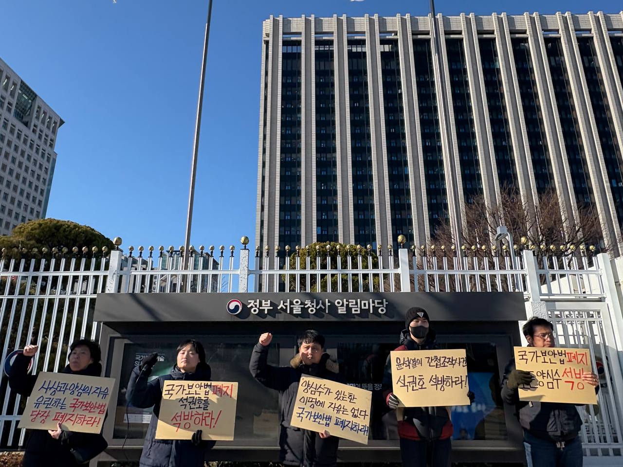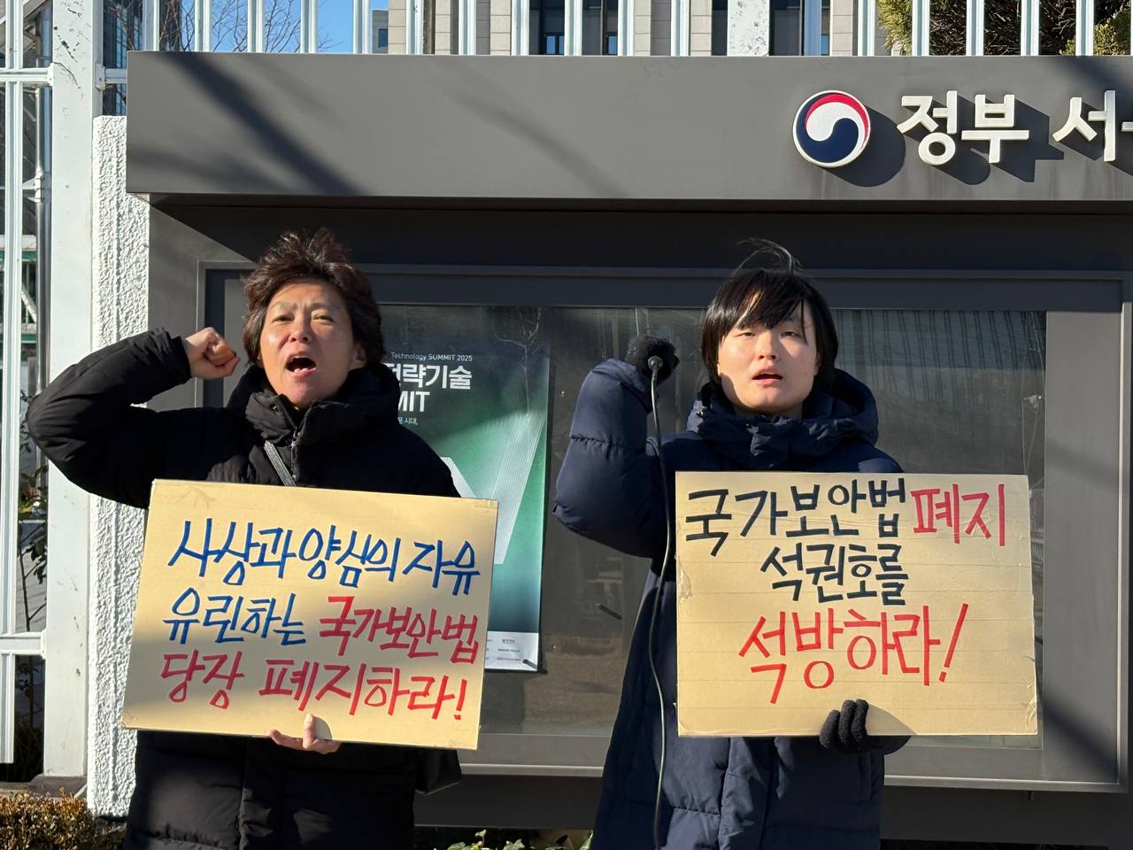 오늘부터는 매주 화요일 정부서울청사 앞에서 <국가보안법 구속자 석권호 석방대책위> 선전전을 합니다.