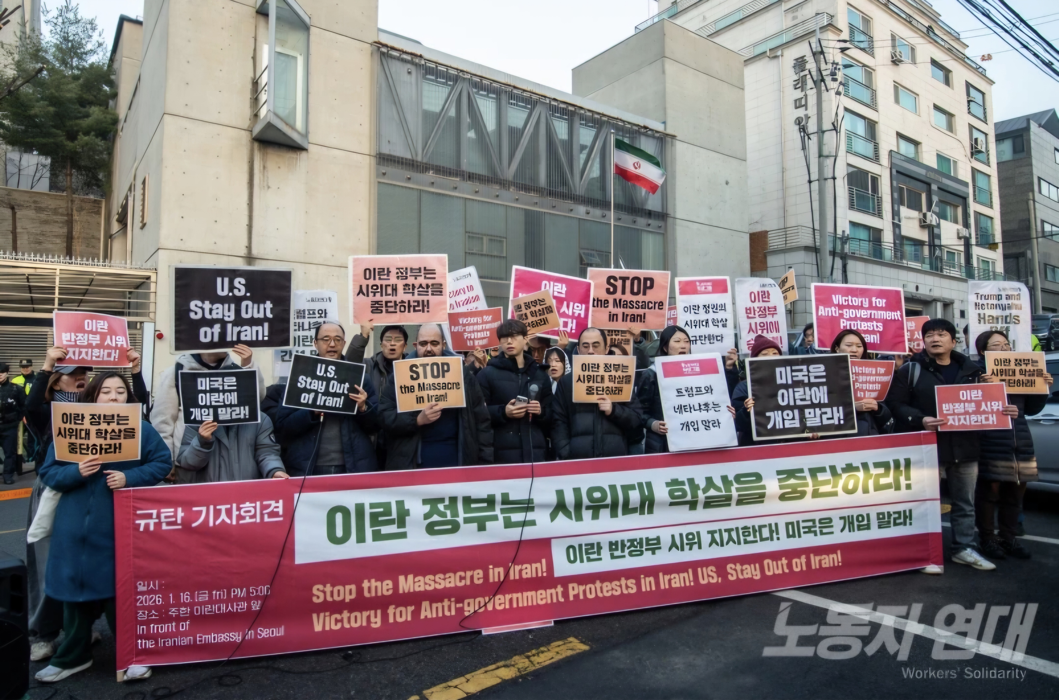 노동자연대는 1월 16일 이란 사태에 대해서도 민중시위를 지지하며 이란 당국이 이를 탄압하고 있다며 이란 한국대사관 앞에서 항의 시위를 개최하기도 했다.