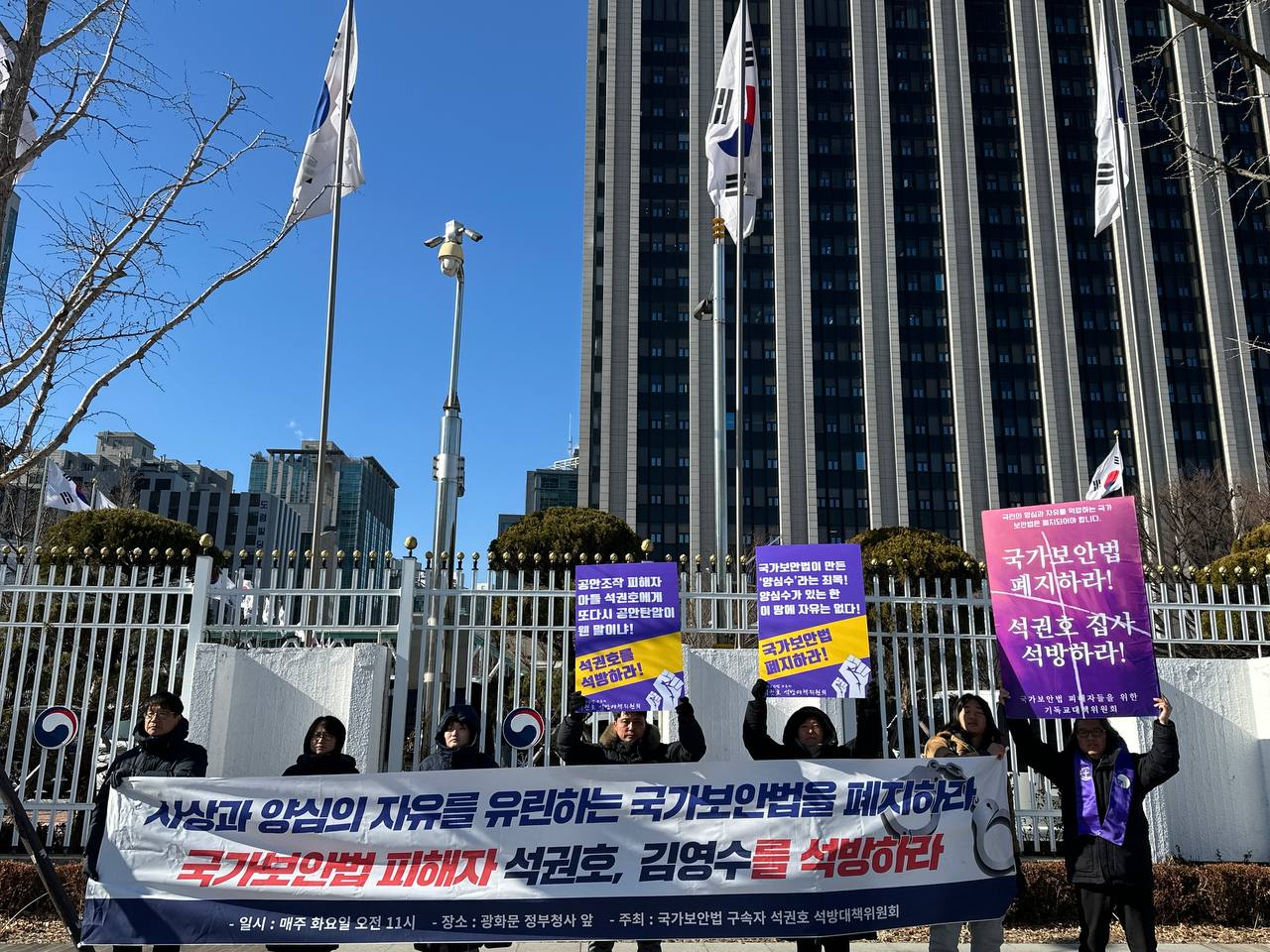 * 매주 화요일 오전11시 광화문 서울청사 앞에서 <국가보안법 구속자 석권호 석방대책위> 차원의 집회와 선전전이 있습니다.