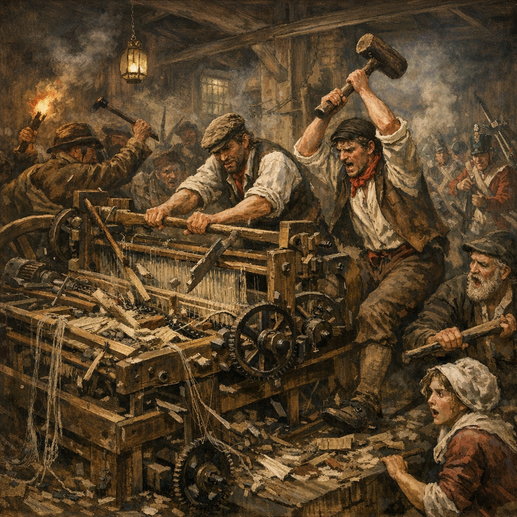 노동자들의 기계파괴 운동은 1811년 노팅엄 지역을 시작으로 요크셔, 랭커셔 등 공업지대로 확산되었다. 이들은 밤에 모여 기계를 전문으로 부수거나 공장에 협박 편지를 보내는 등 조직적으로 행동했다.