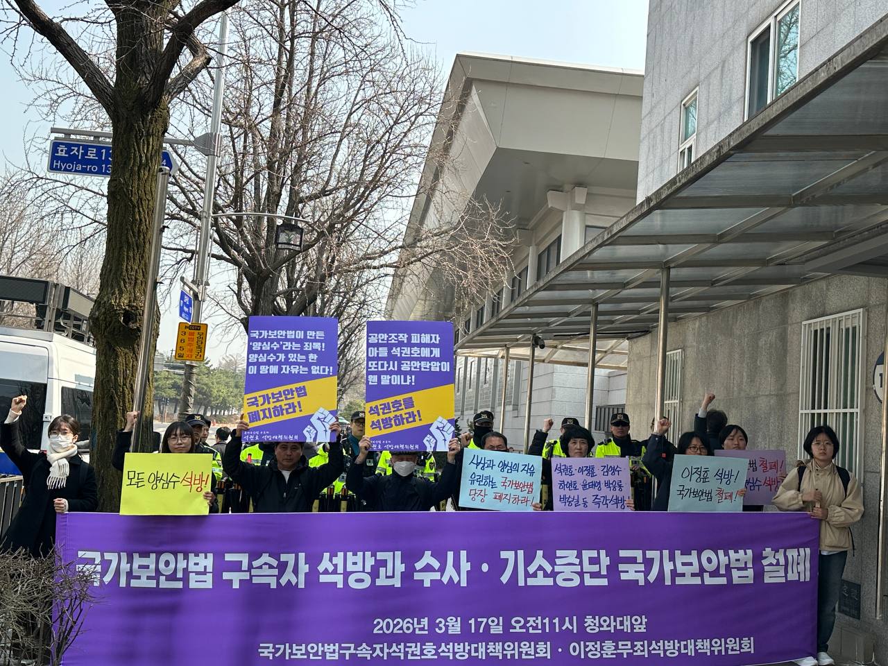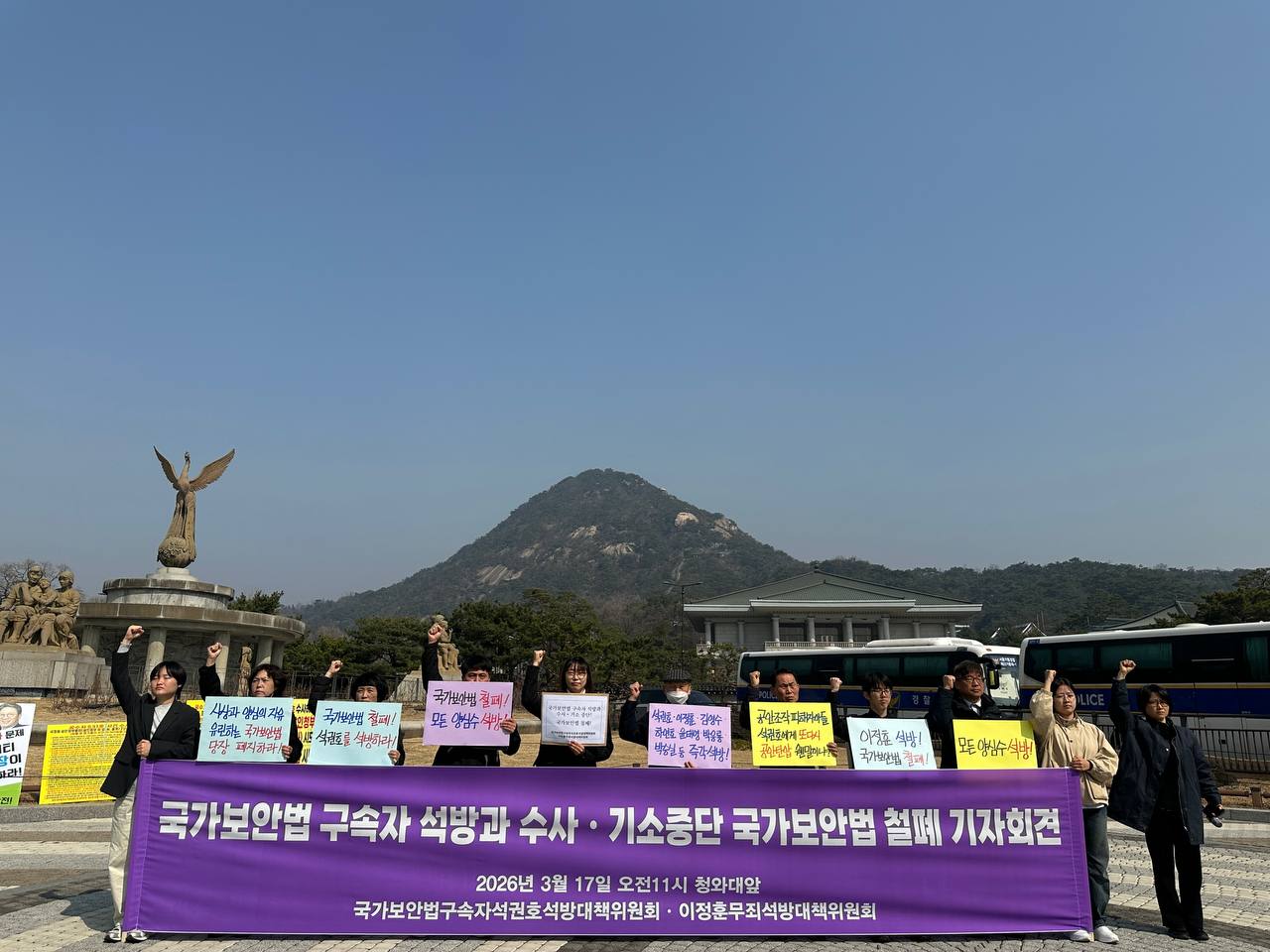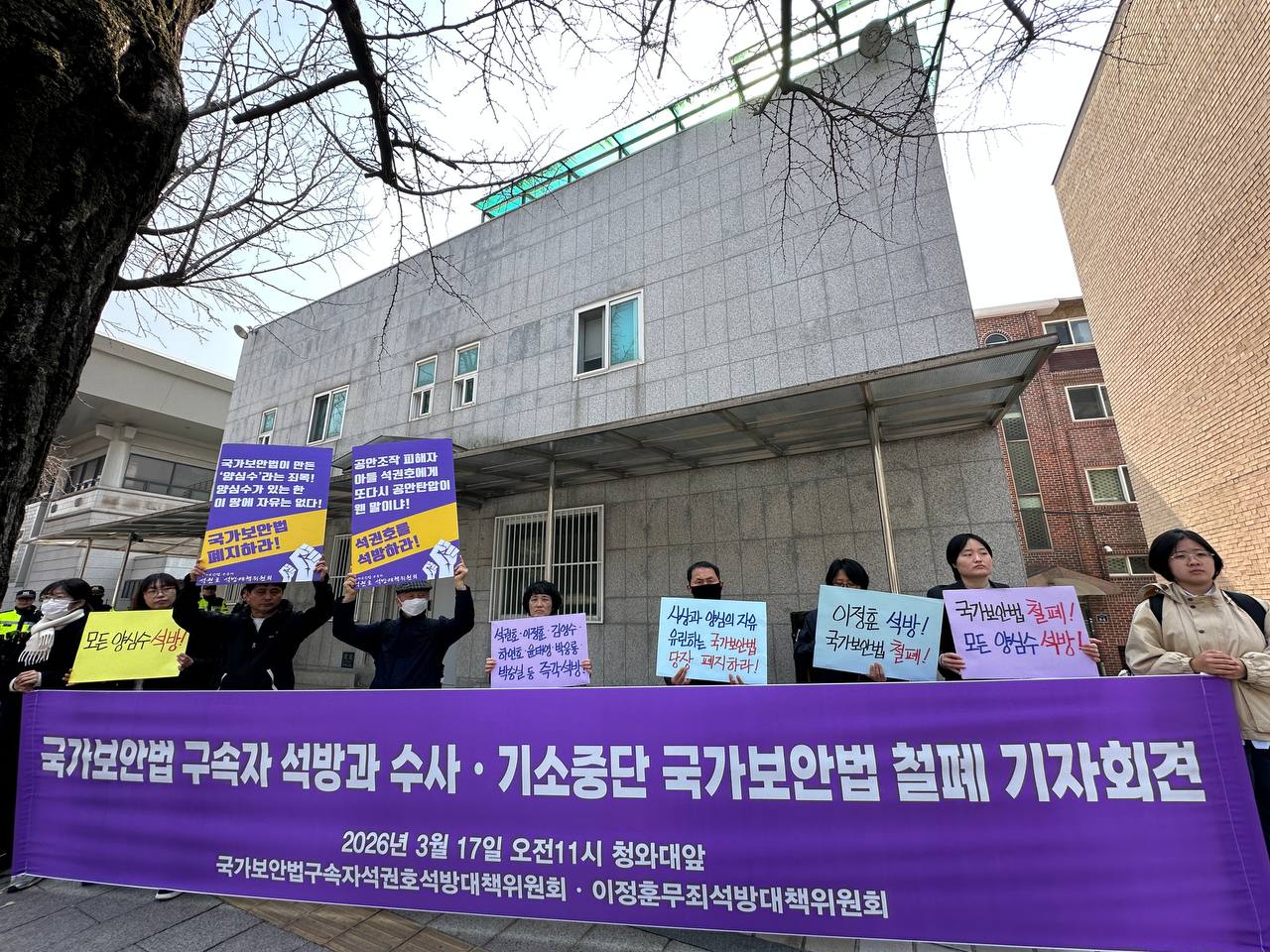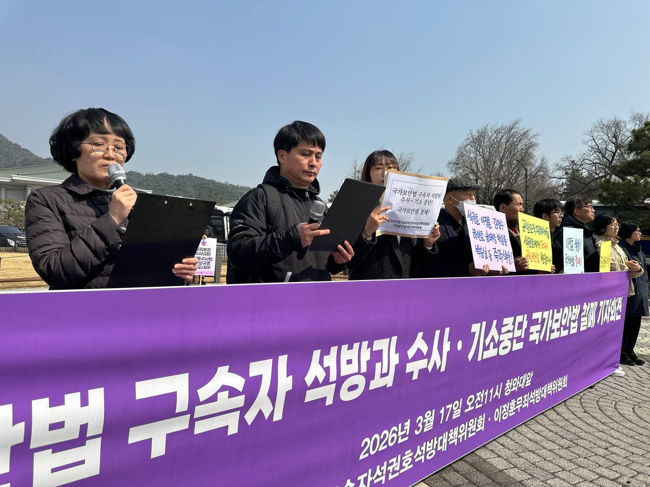 2026년 3월 17일 <국가보안법 구속자 석권호ㆍ양심수 석방! 국가보안법철폐! 기자회견> 참가자 일동