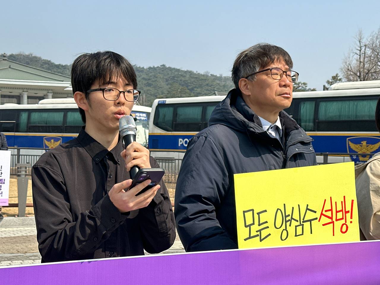 우리는 이 기자회견을 통해 정부에 요구합니다.